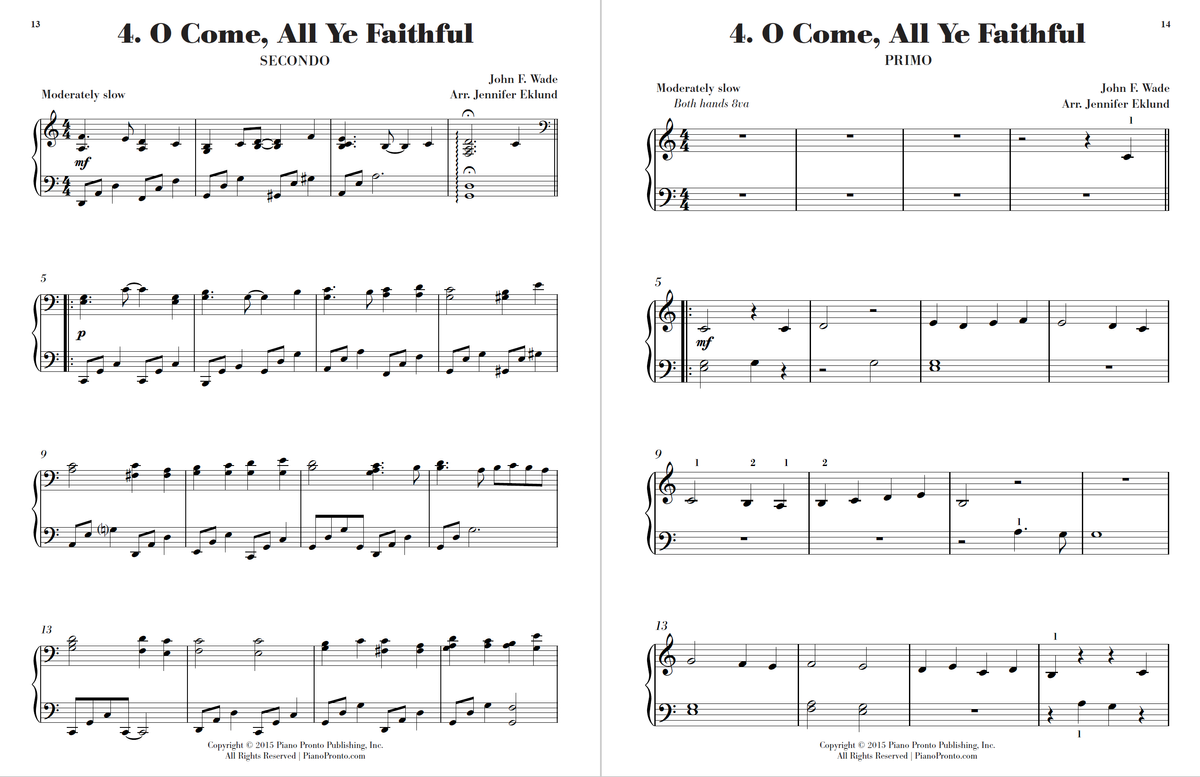 The duets in this book are meant to bring peace and calm into your studio and your teaching practice. The duet parts sit easily under the hands (you can sightread them) and are full of modern, lush harmonies that brighten up traditionally basic holiday melodies. The student parts also work as stand-alone pieces so students can practice them during the week without you and there won’t be chunks of the piece missing.