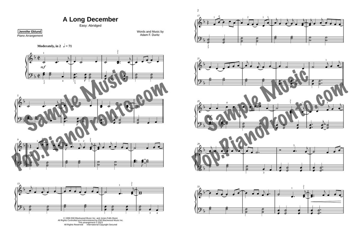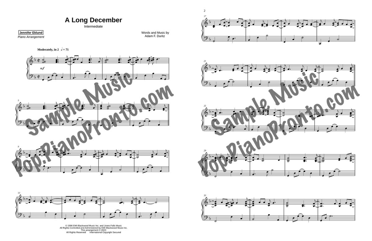🎹 Piano sheet music options of “A Long December” arranged by Jennifer Eklund: