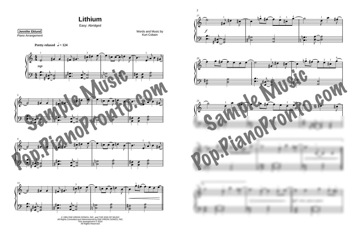 1. “Lithium” Intermediate Piano Solo