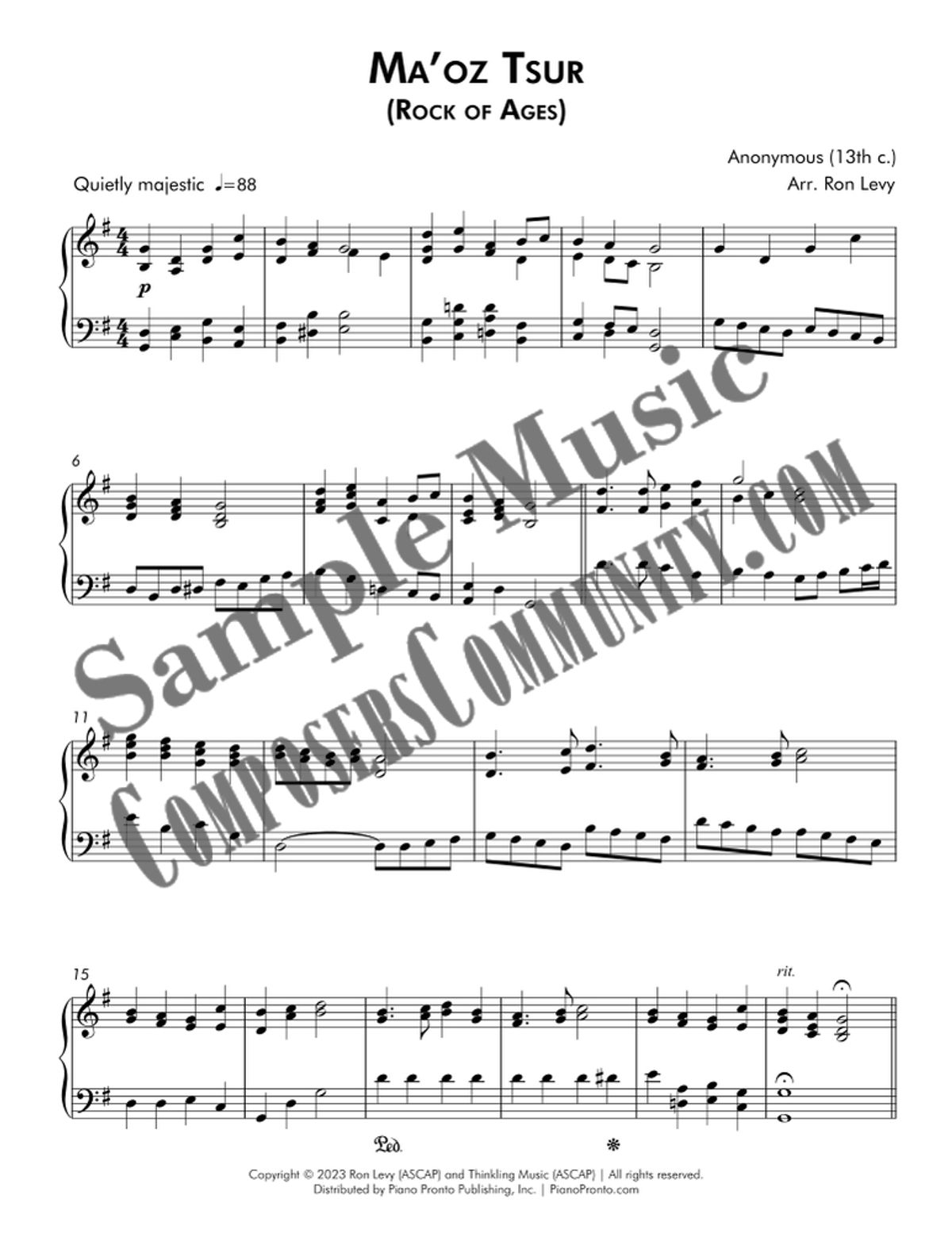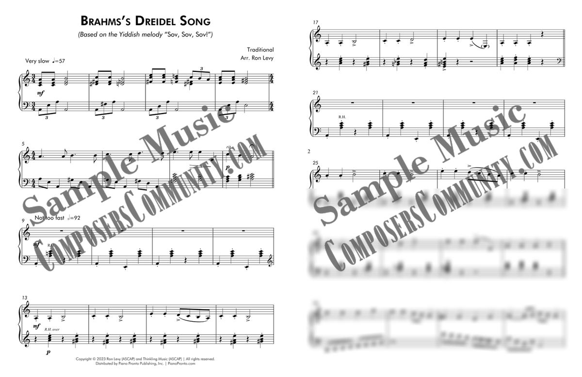 We called it this because the opening is very reminiscent of one of Brahms’ piano pieces, Op. 116 number 2. Pathos galore. But true dreidel fun begins at measure 9. Because, oom-pah! And we love oom-pah! A sudden cessation of activity in measure 55 signals a musical pause at a very slow tempo; again dramatic! But dancey oompah resumes at measure 64, and all is well. (And Brahms did love his oom-pah)!
