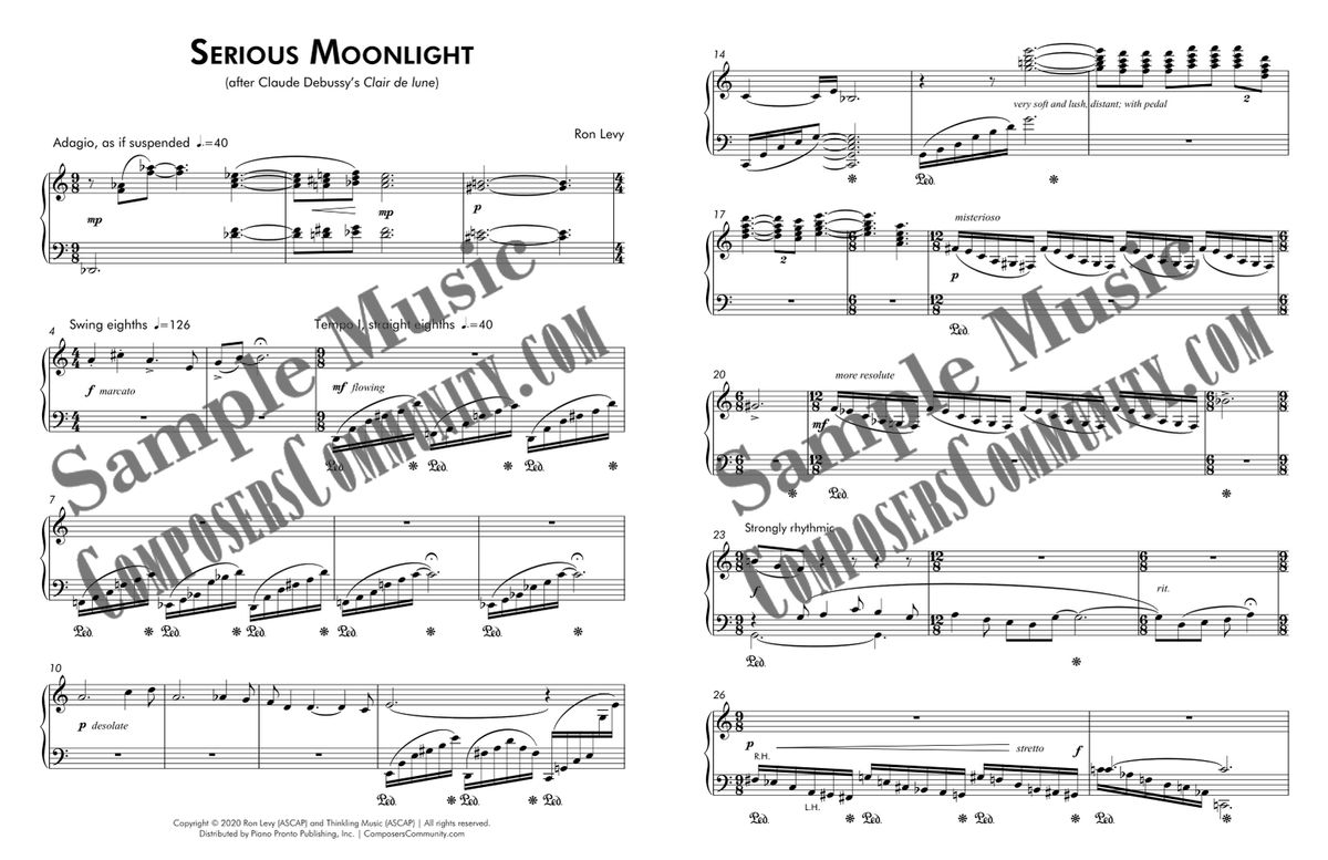 Debussy most famous piano piece is “Clair de Lune” – which means “moonlight” in French – and it is this piece which is both inspiration and source material for “Serious Moonlight.”