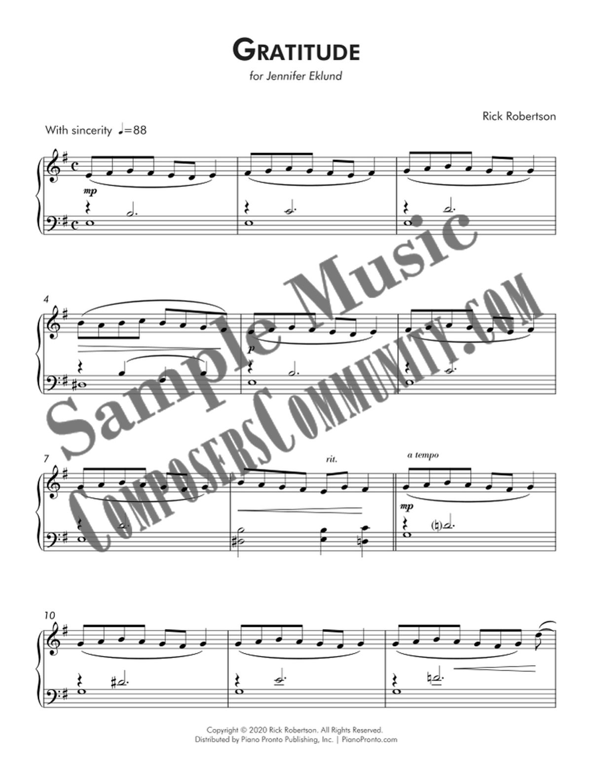 Gratitude, composed by Rick Robertson, is an early intermediate lyrical solo that is suitable for recitals and service playing. This contemplative solo is a great one for the season of gratitude and thankfulness!