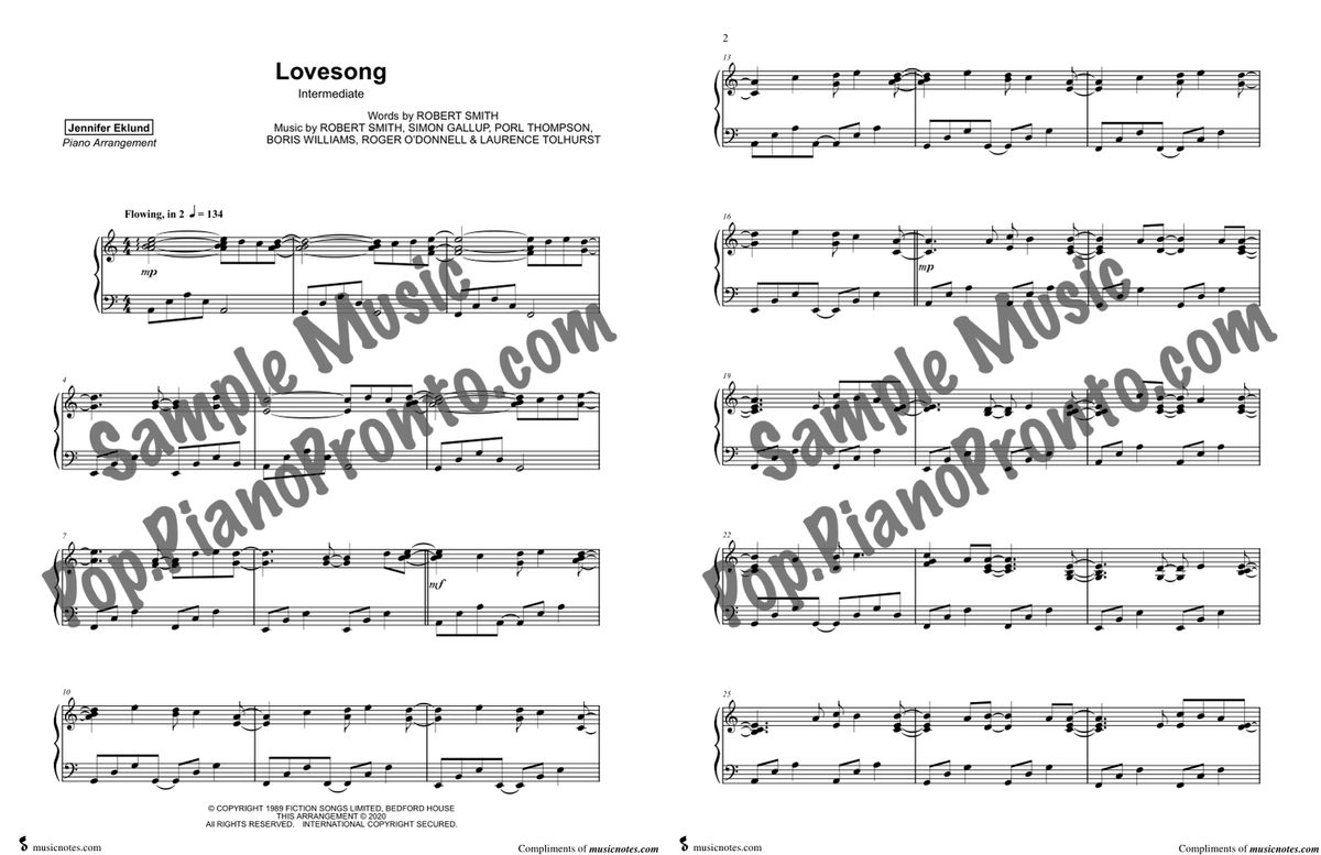 Musically, “Lovesong” is performed in A minor and features a distinctive bass riff. The verses follow an Am/G/F/Em chord progression, which changes to F/G/Am/C in the choruses. The song’s simplicity and unusually upbeat nature compared to other tracks on the album were noted by the band’s frontman, Robert Smith.