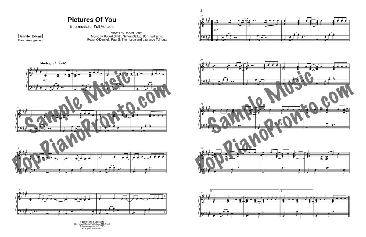 The following ten songs are included in the The Cure Favorites songbook.